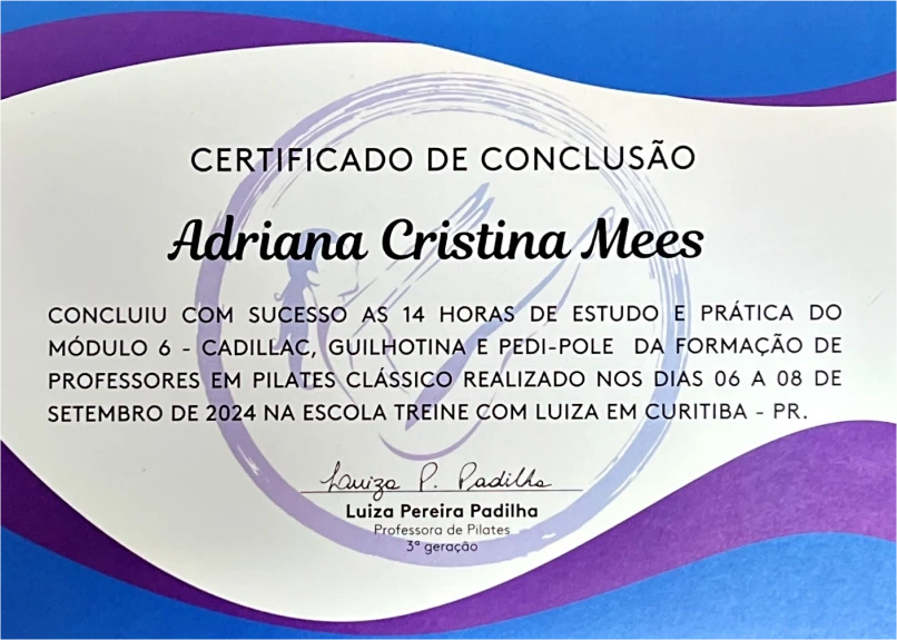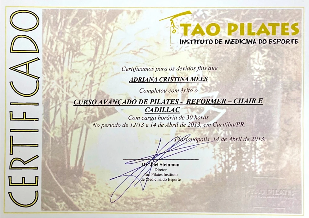 * Certificada em Pilates avançado de equipamentos também pela Tao Pilates;