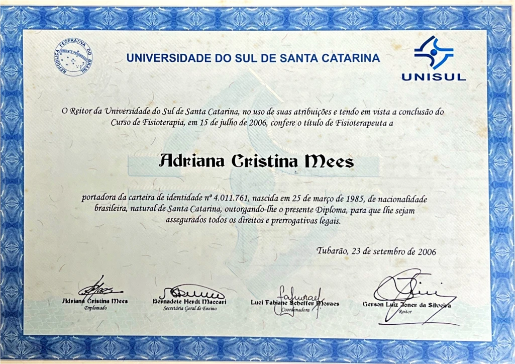 * Fisioterapeuta graduada pela Universidade do Sul de Santa Catarina (UNISUL);